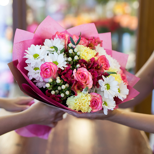 贈り物に喜ばれる花束をお求めの際は、ぜひ当店にご相談ください。